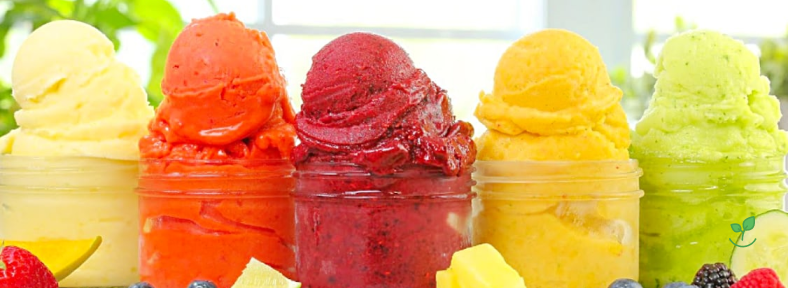Misture maracujá ou abacaxi à base para um sorbet tropical.