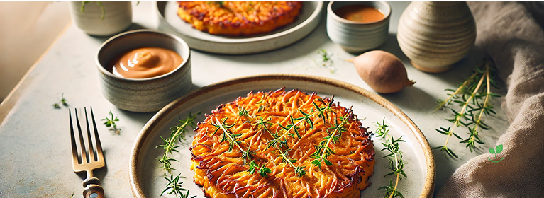 Essa batata-doce rosti é uma opção saudável, sem glúten e cheia de sabor, perfeita para qualquer refeição do dia! ✨