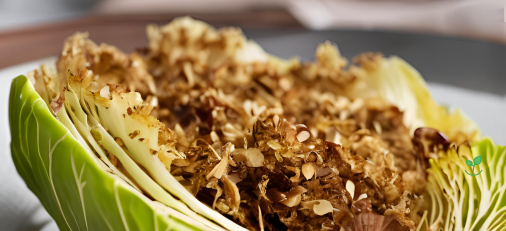 Transforme o repolho em uma experiência gastronômica única! 😍 Esse prato vegano e sem glúten é assado até ficar macio e coberto com uma crosta de castanhas e ervas, que dá um toque crocante e um sabor incrível.