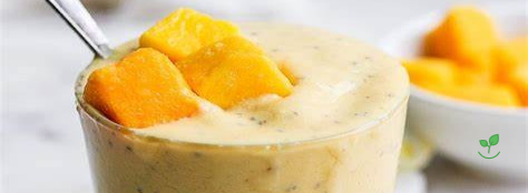 Misture Tudo no Liquidificador: No liquidificador, adicione o suco de laranja, manga, sementes hidratadas, óleo de coco, acerolinha (se usar), cúrcuma e água de coco. Bata até obter uma mistura homogênea e cremosa.
